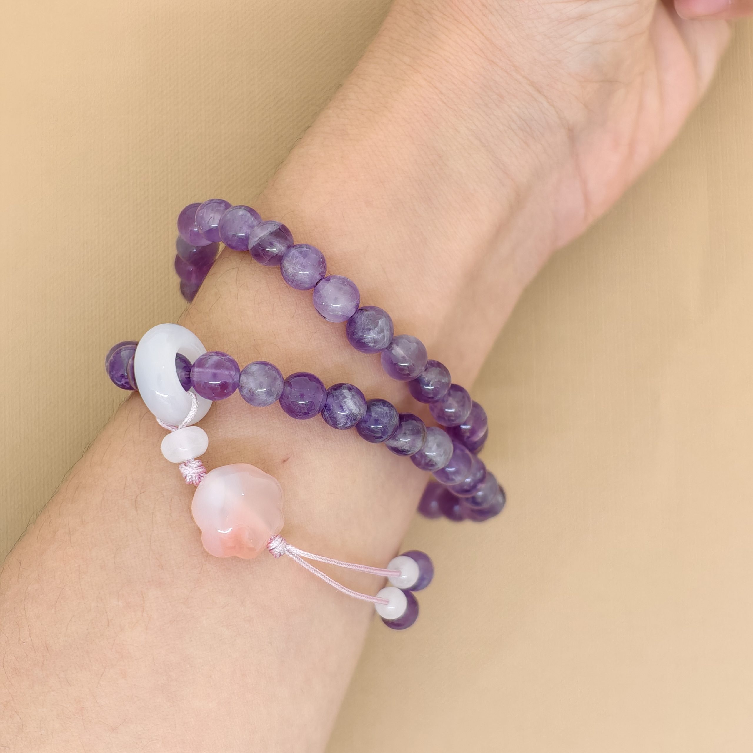 - Amethyst, though often associated with spiritual wisdom, is infused here with the powerful Fire element and complemented by a red cat’s paw charm, symbolizing intense creativity and passionate action. This bracelet bolsters physical stamina and energetic vitality, restores vitality and revives a sense of purpose, and ignites the courage to embrace change fearlessly.