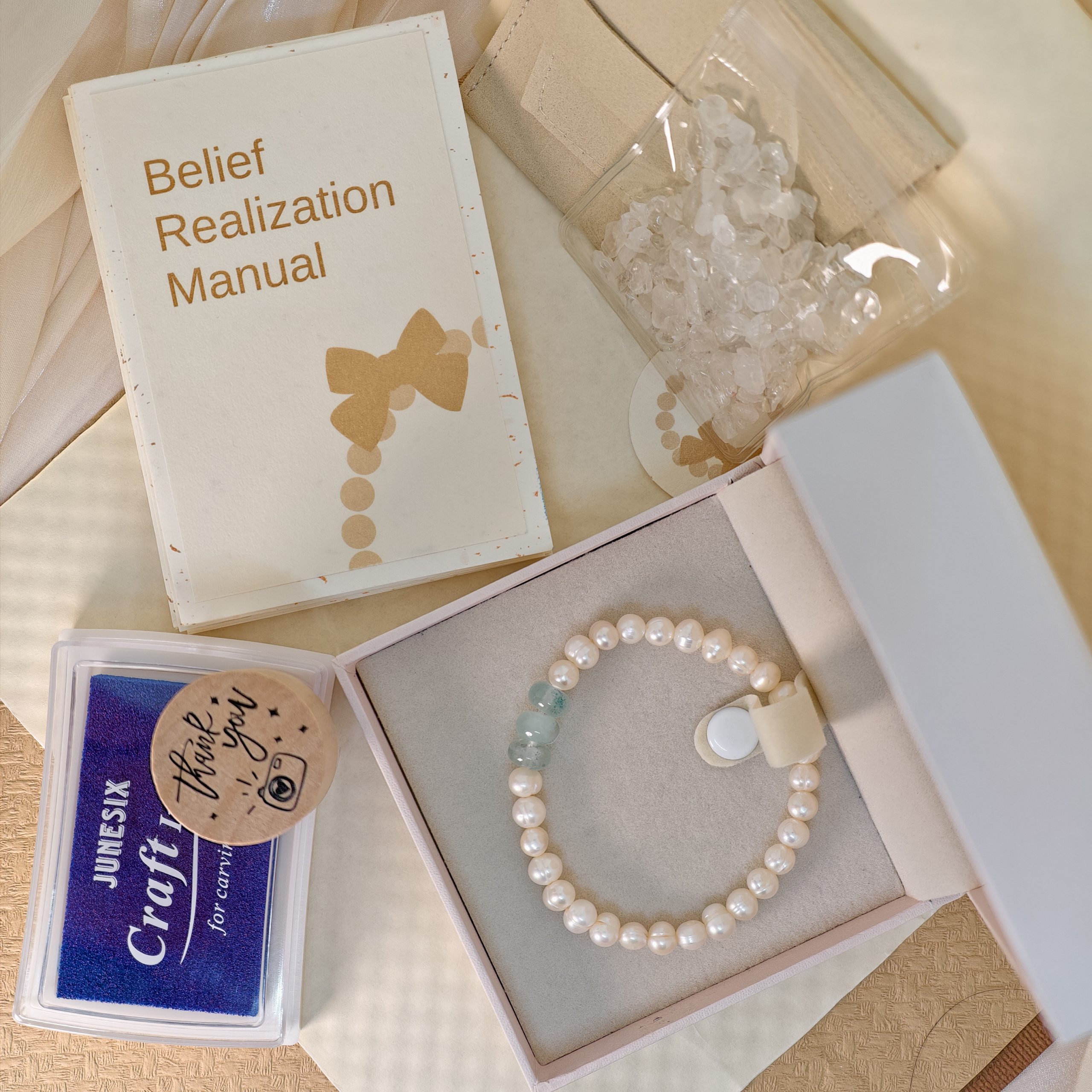 • Each crystal bracelet comes with a complimentary Belief Realization Manual. You can use this manual to record the beautiful moments associated with your belief.